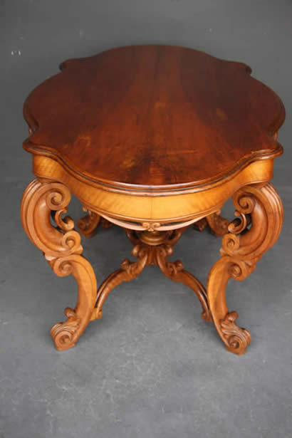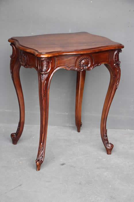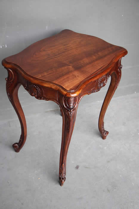 | Title French walnut carved occasional table with shaped top on cabriole legs | |
