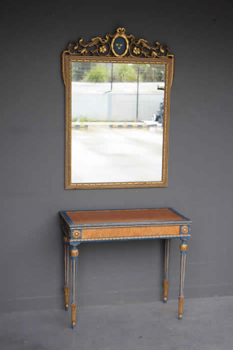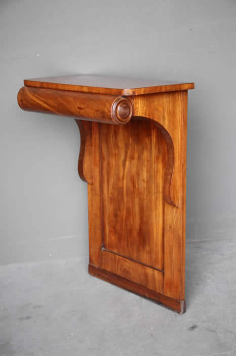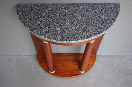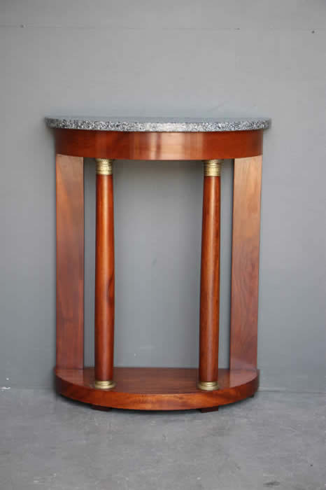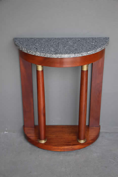 | Title Antique flame mahogany and burl walnut French Empire console table with grey marble top | |