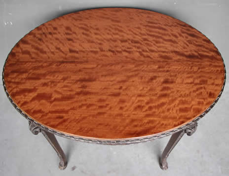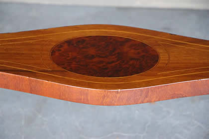 Description Sutherland table 4890 Antique English satinwood oval Sutherland centre table with drop sides and butterfly hinge support legs 1860