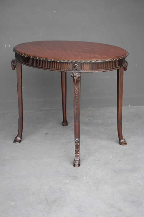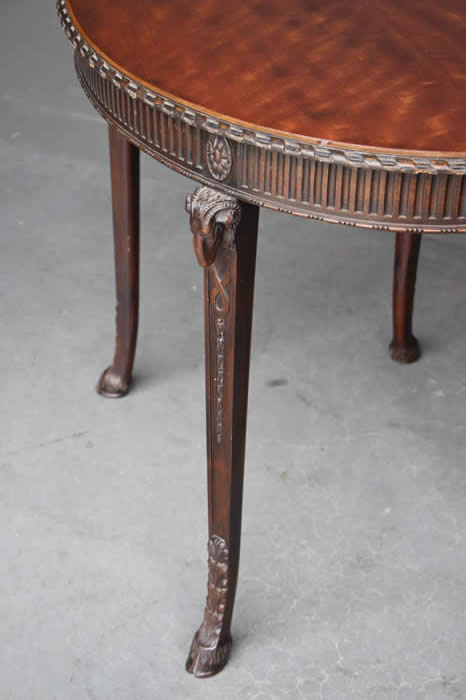 Description Centre table 6471 Vintage mahogany centre or lamp table in flame mahogany top with carved border. In the English Regency manner this Scandinavian mahogany round centre table raised on carved reeded column to platform base and curved scroll feet. Ideal as use for a games table, lamp or bedside table. Polished all round. Beautiful quality craftsmanship with superb selection of timbers.
