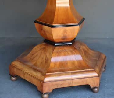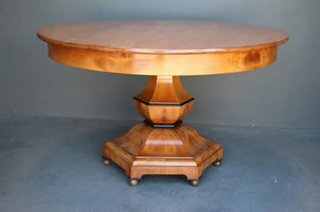 Description Birch table 4800 Gorgeous Swedish blonde birch Empire centre table on carved column to platform base and ebonised feet 1910. A precursor to the later Art Deco era this beautiful Biedermeier revival furniture is highly sought after for its clean minimalist lines and use of light coloured timbers with contrasting ebonised details. Timless elegance..
