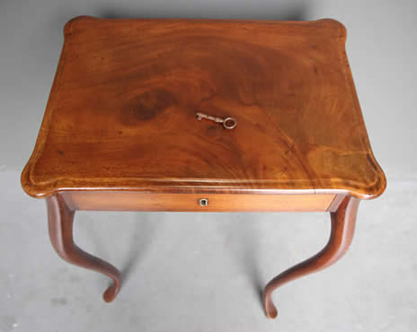 Title Flame mahogany jewellery table occasional bedside or sewing table with lockable fitted interior 1850