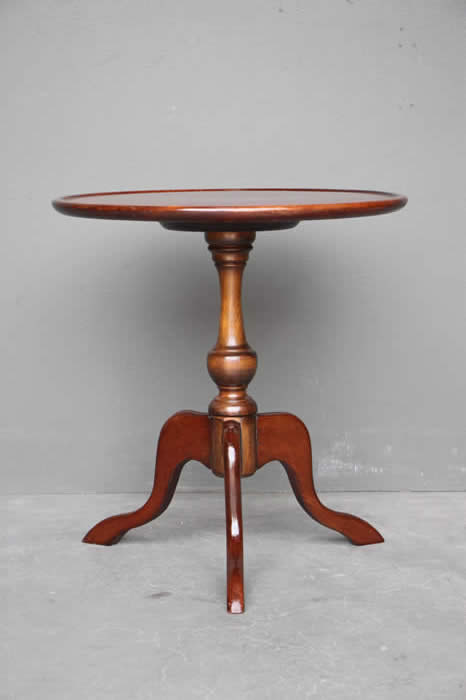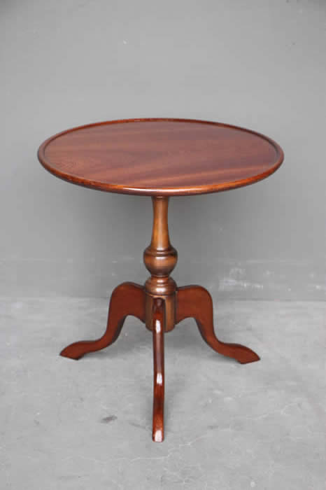 Description oak wine table 6280 English blonde oak wine table in the Georgian Chippendale manner with raised lip solid golden oak top . The table is raised on a turned baluster shaped column to tri form legs. Excellent sellection of timber grain all in the solid and in a highly sought after blonde oak finish .