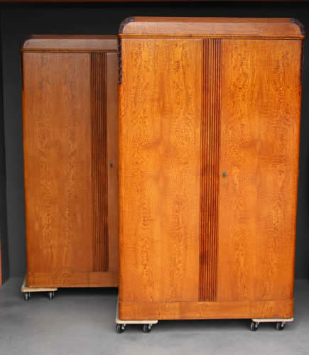 The wardobe comes apart into a flat pack for easy transport with only wooden wedges and clasps fixing all parts together. Clever design pre-IkEa.