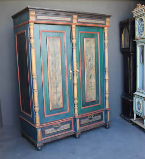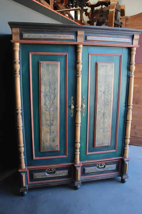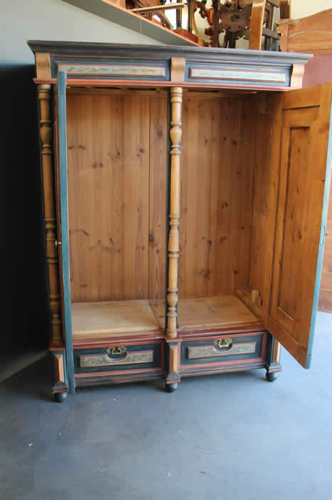 | Title Antique Austrian farmhouse hand painted armoire Schrank wardrobe edelweiss flowers turned columns