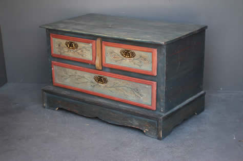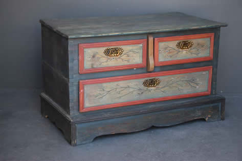 | Title Antique Austrian farmhouse hand painted baltic pine low chest of 3