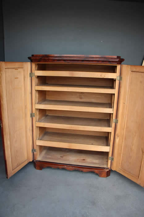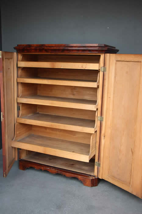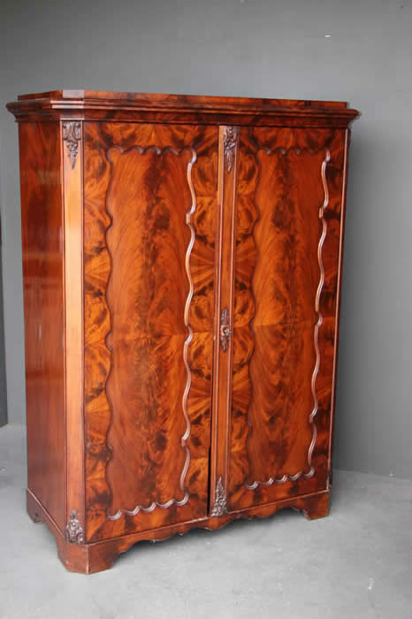 Antique Biedermeier flame mahogany armoire linen press chest with internal drawers 1845 Scandinavia |